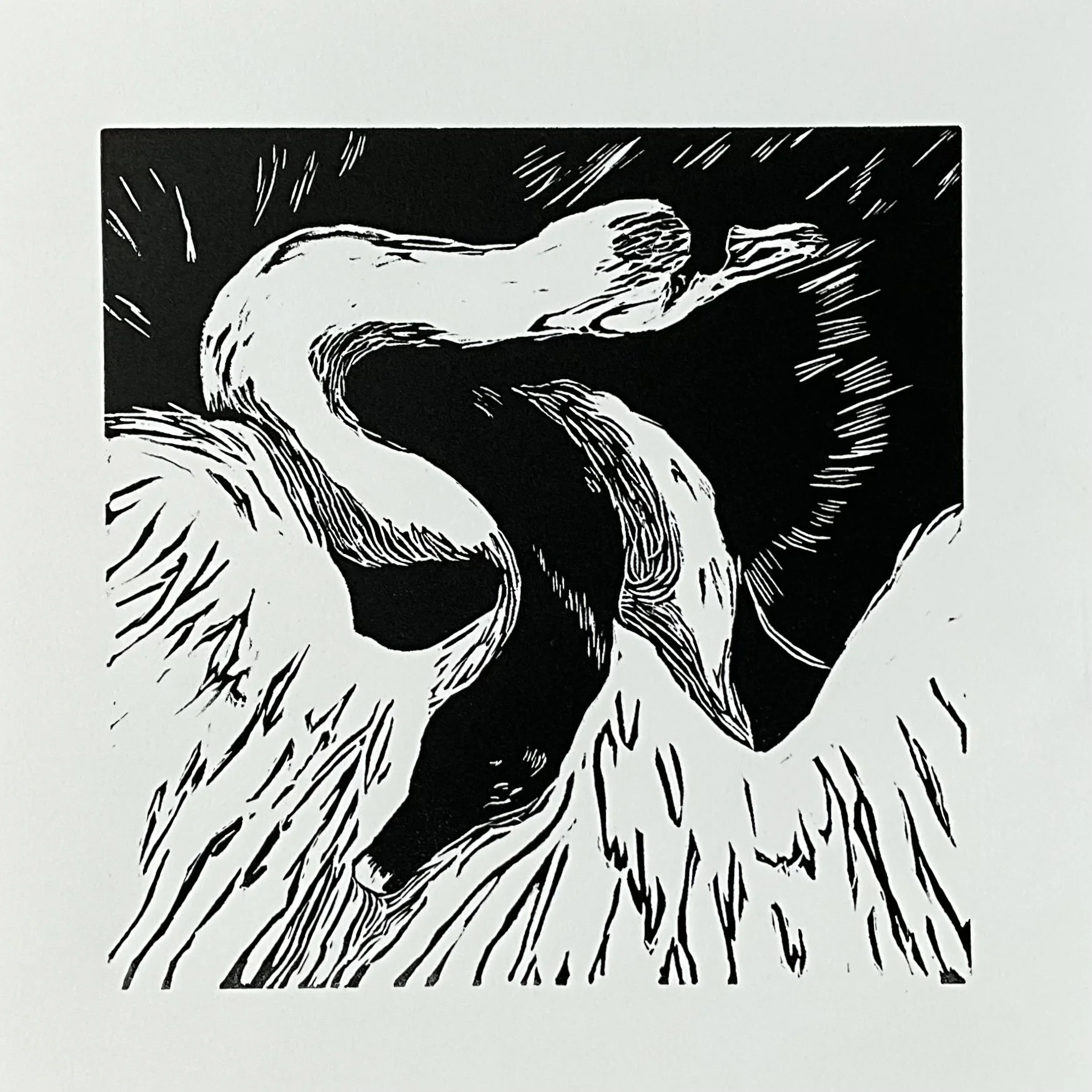 Intertwined Relief Print | 8in x 8in | 2026 This print got accepted in the art exhibit "Through the Moving Press".